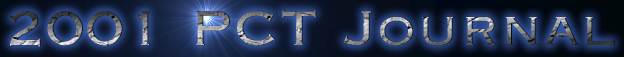 Also, because of back problems, I feel fortunate to actually have a chance to complete the PCT. When I began my section hike in 1999 at Campo, I really didn't think I'd make it out of southern California, much less all the way to Canada. I made the attempt mainly so I'd know in my heart that I'd given it my best shot. I didn't expect my back to hold up at all, but in 1999 I hiked just over a thousand miles. However, by the time I reached Sonora Pass 3 months later, I could barely walk. I made a vow to return to Sonora Pass, and the next year, Brawny and I had the time of our lives hiking an additional 813 miles, from Sonora Pass to Crater Lake. My back held up while we were on the trail, but shortly after we returned home, it suddenly got worse. For over a month, it was extremely difficult and painful just sitting, standing, dressing, bending, and getting in and out of a car. Getting comfortable enough to sleep became a major challenge each night. There seems to be a pattern developing that is difficult to ignore.